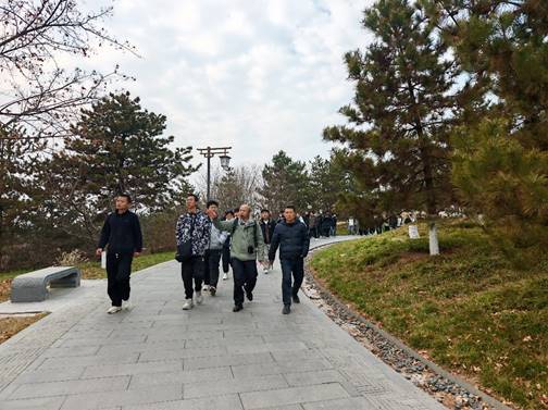 随后,师生一行漫步至悦容公园,在自然与人文的交融中感受雄安新区城市规划的温度。作为雄安新区重要的生态休闲空间,悦容公园以古典造园技艺为核心,融合现代景观设计理念,园内亭台楼阁错落有致,曲径通幽间花木繁茂。讲解员向师生们介绍了公园蕴含的地域文化内涵。师生们沿途欣赏朱红廊柱、青瓦飞檐的古典建筑,观察适应性强的乡土植物品种,深刻体会到新区在城市建设中“以人为本、生态优先”的发展思路,也对“城市与自然共生”的理念有了更直观的理解。